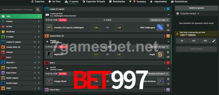 O bet997 oferece uma grande seleção de opções de apostas em e-sports com probabilidades competitivas